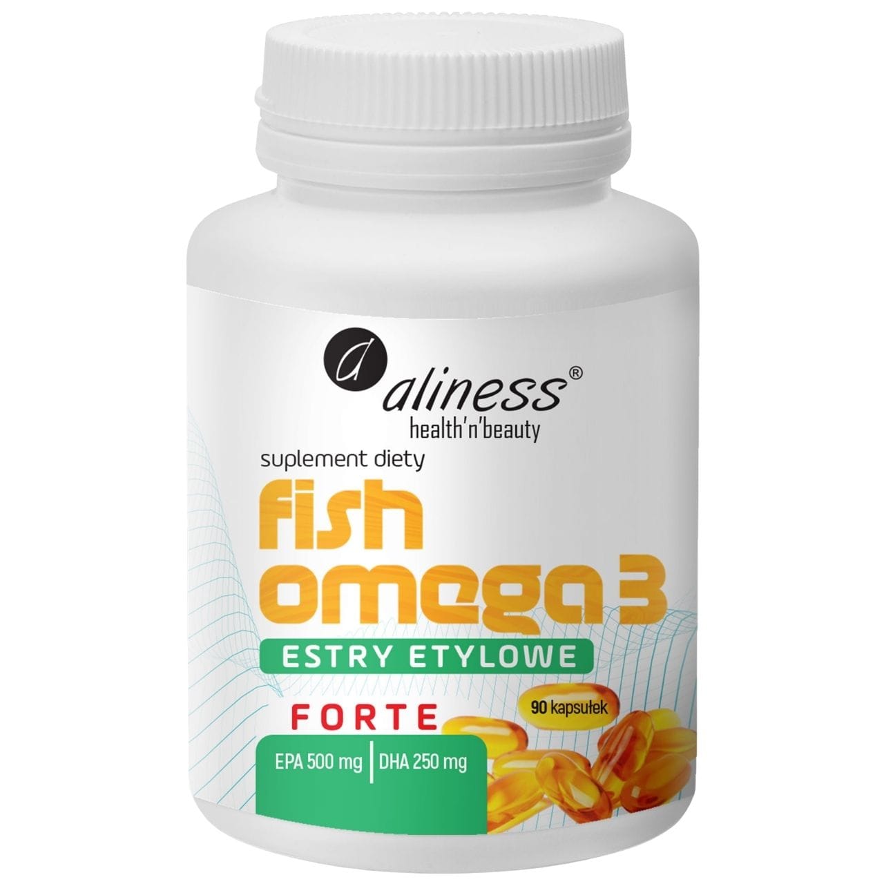 Aliness Fish Omega 3 Forte 500/250 mg es un complemento alimenticio en cápsulas blandas que contiene aceite de pescado en forma de ésteres etílicos . Una dosis de ( 2 cápsulas ) proporciona 1500 mg de ácidos omega-3 ácidos ,, incluyendo EPA ( 1000 mg ) y DHA ( 500 mg ) . El EPA y el DHA contribuyen al funcionamiento adecuado del corazón. El DHA contribuye al funcionamiento adecuado del cerebro y al mantenimiento de una visión normal. Los ésteres etílicos permiten una alta concentración de ácidos omega-3. Envase 90 cápsulas = 45 días de uso . Contiene pescado.