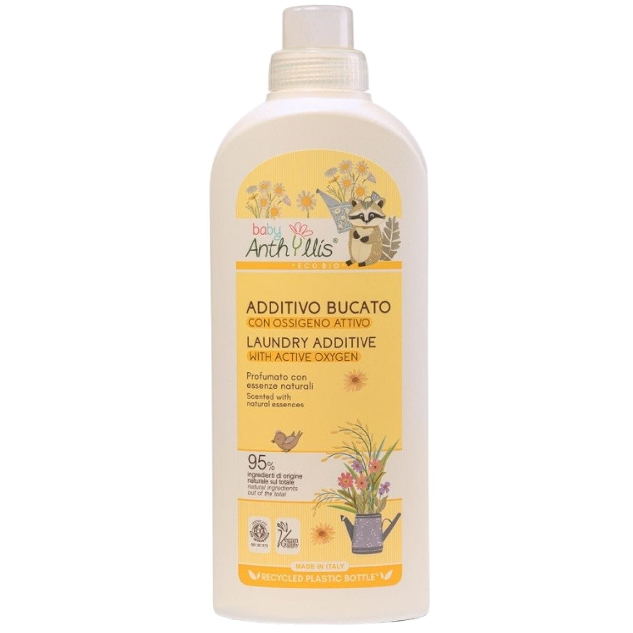 Anthyllis Baby es un aditivo para el lavado de ropa certificado como ecológico con oxígeno activo , especialmente diseñado para eliminar las manchas de la ropa infantil. La fórmula , con un 95 % de ingredientes naturales , elimina eficazmente incluso las manchas difíciles de comida , hierba y barro tanto de tejidos blancos como de color .