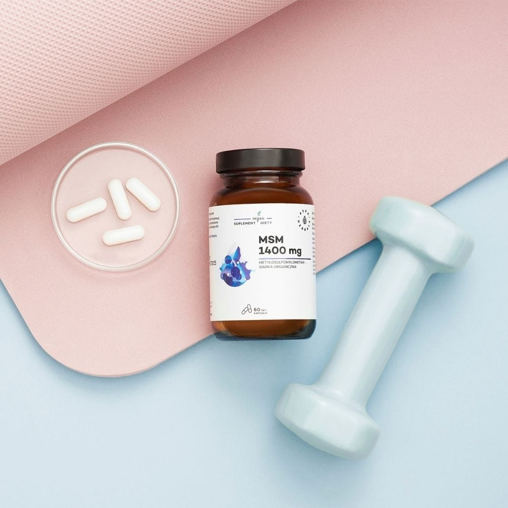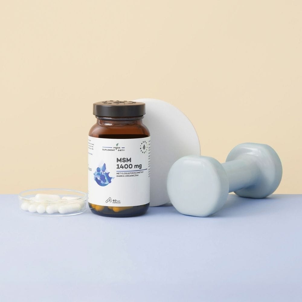 Aura Herbals MSM 1400 mg es un complemento alimenticio en forma de cápsulas. Fuente de MSM (metilsulfonilmetano), , un compuesto orgánico natural de azufre necesario para el correcto funcionamiento de muchos procesos biológicos del organismo.