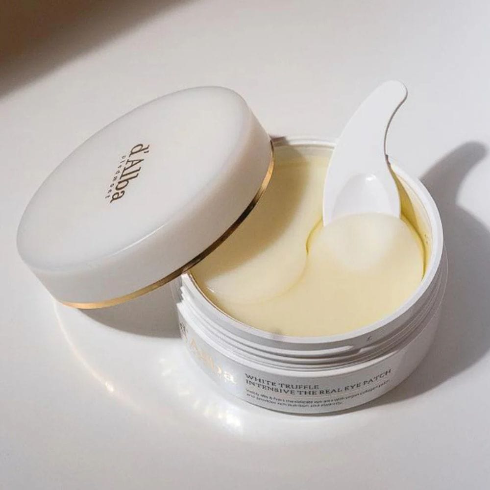 Parches intensivos para los ojos con trufa blanca de D'alba son unos lujosos parches de hidrogel que contienen 1,73 ppm de extracto de trufa blanca y colágeno. Su innovadora fórmula con fermentos y 7 aceites vegetales naturales hidrata intensamente, aclara las ojeras y reduce las líneas de expresión. Textura gel flexible se adhiere perfectamente a la piel, liberando gradualmente los principios activos. Después de 40-50 minutos, las almohadillas se vuelven translúcidas, lo que indica la absorción completa de los nutrientes.