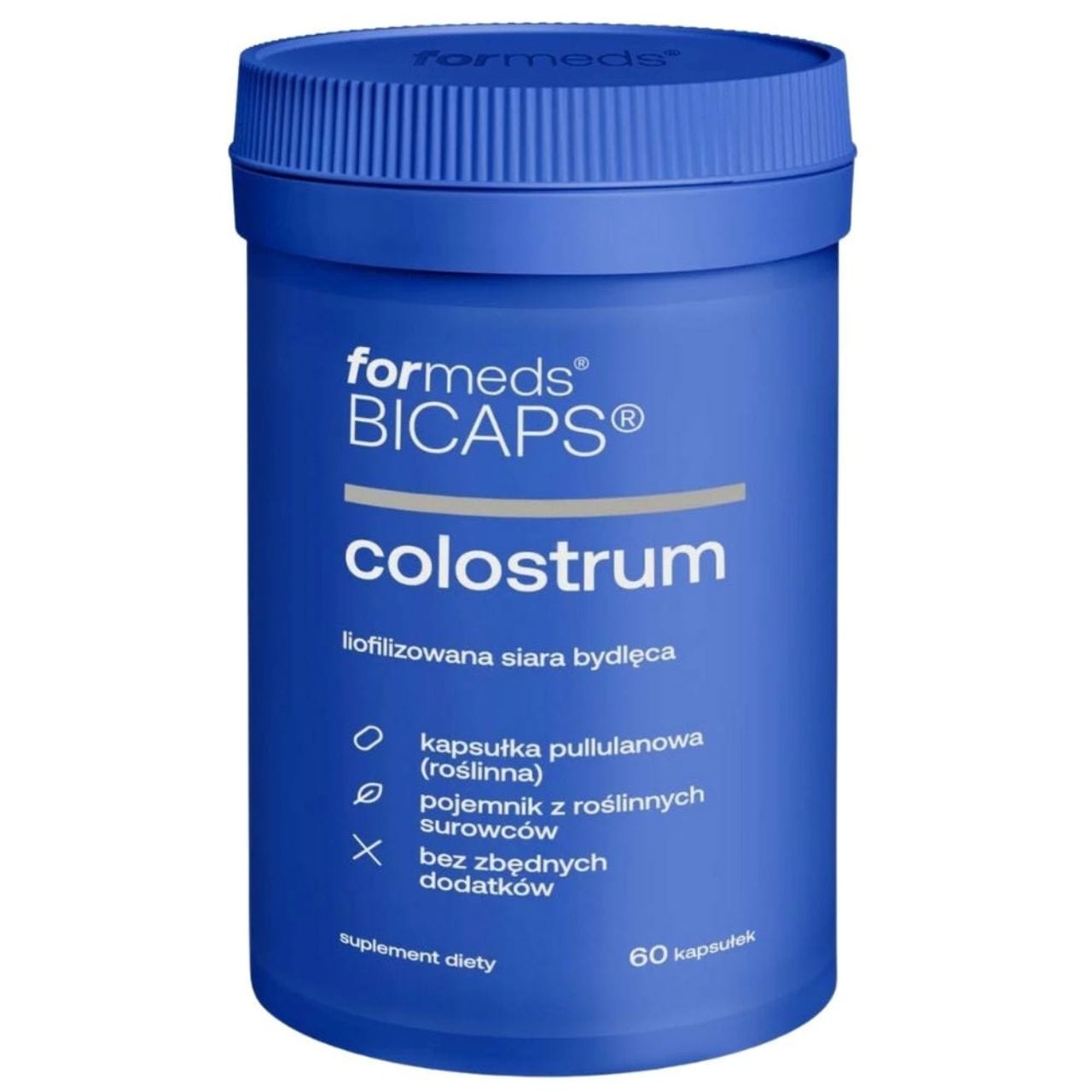 Formeds Bicaps Colostrum es un complemento alimenticio en forma de cápsulas. Es una fuente de Colostrum, bovino liofilizado obtenido en las primeras 24 horas después del nacimiento. Esto garantiza que conserve toda su estabilidad y actividad biológica. Colostrum estandarizado para inmunoglobulinas (30%), lactoferrina (2,5%) y polipéptidos ricos en prolina (2%).