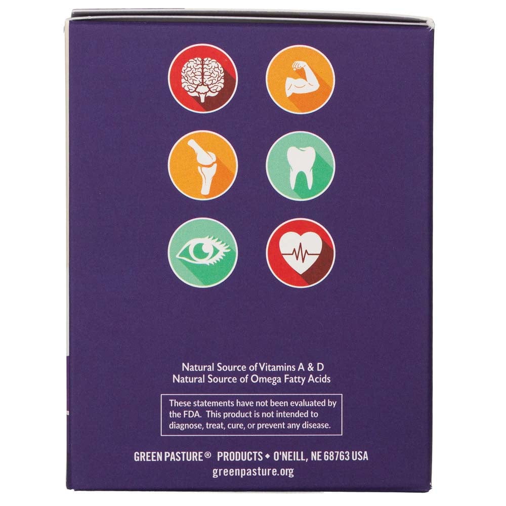 Green Pasture Mezcla de aceite de hígado de bacalao fermentado y aceite de mantequilla concentrado, Chocolate, Gel - 188 ml