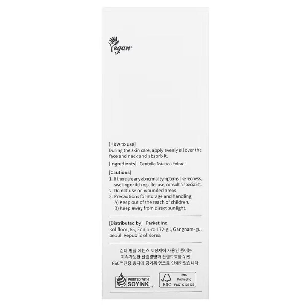 Esta esencia única aprovecha todo el poder de la centella asiática en su forma más pura. Su fórmula minimalista se basa en tres ingredientes cuidadosamente seleccionados, con el extracto de Centella asiática, conocido por sus propiedades antiinflamatorias y antioxidantes, como ingrediente principal.