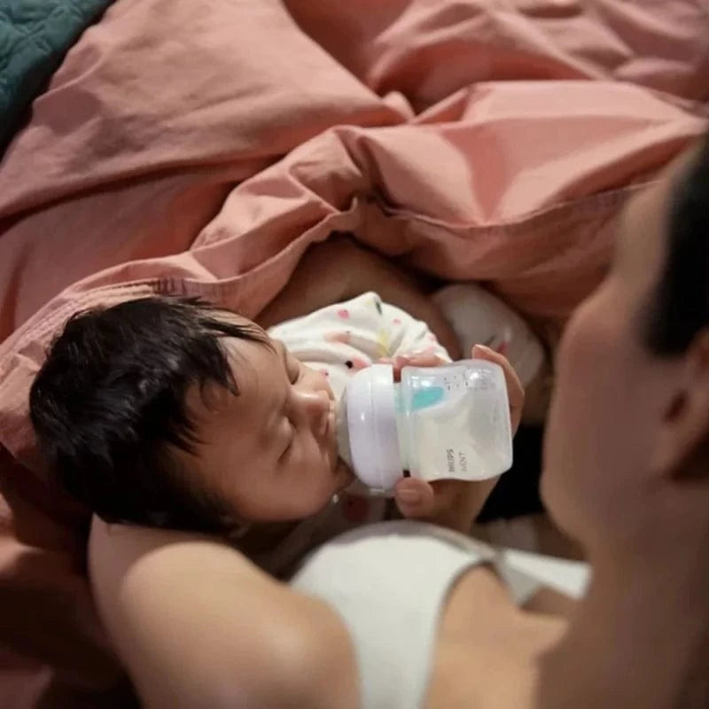 Una ventaja adicional es la válvula anticólicos AirFree patentada , que mantiene la tetina llena de leche en lugar de aire durante la alimentación en posición vertical. Esto reduce significativamente la cantidad de aire que se traga, minimizando el riesgo de cólicos, gases y reflujo en tu bebé. También te permite alimentar en posición vertical, lo que reduce aún más el riesgo de tragar aire.