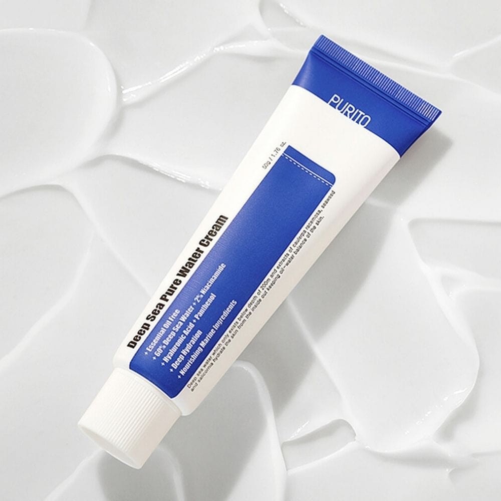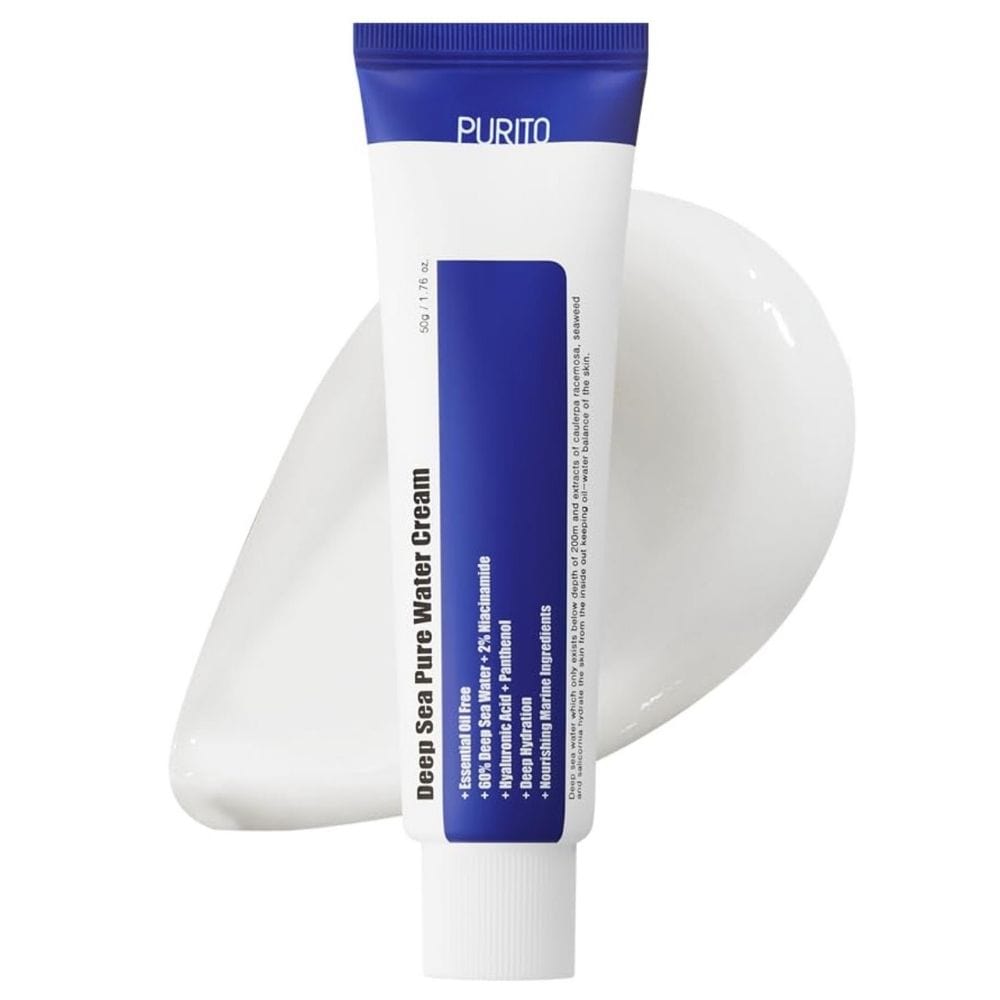 PURITO Deep Sea Pure Water Cream es una crema hidratante ultraligera con un 60% de contenido en agua de mar. Su fórmula sin fragancia , enriquecida con minerales preciosos e ingredientes activos, proporciona una hidratación intensa y ilumina la piel.