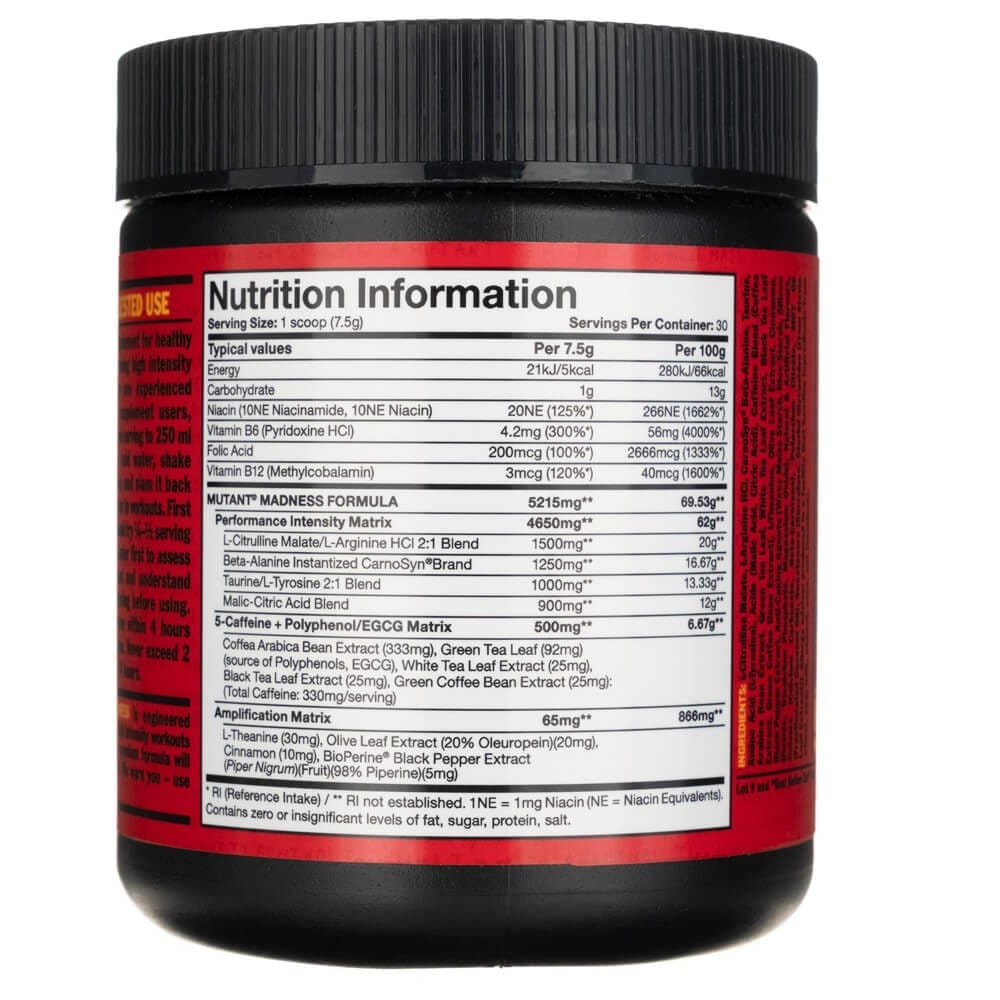 PVL Mutant Madness es un suplemento dietético en polvo formulado para los entrenamientos de mayor intensidad. Mutant Madness contiene arginina, citrulina, beta-alanina y más ingredientes de primera calidad para apoyar mejor cada uno de sus entrenamientos.