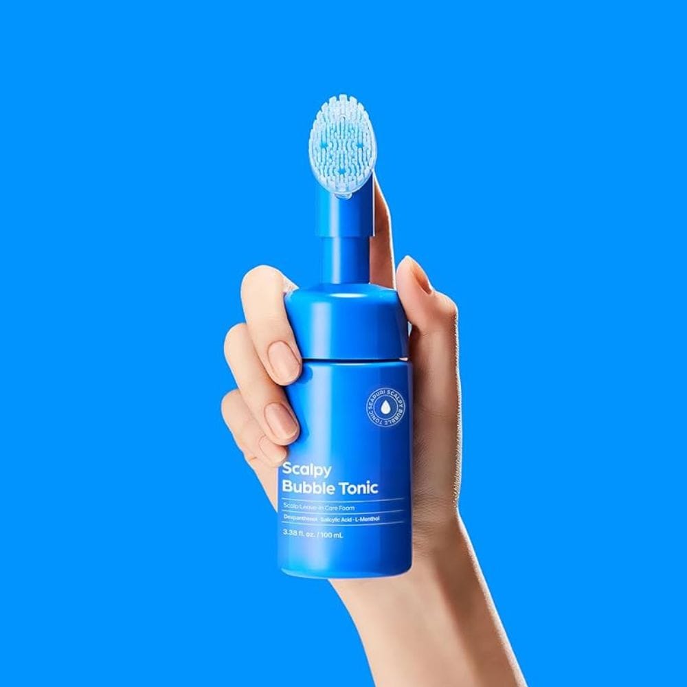 Seapuri Scalpy Bubble Anti-Dandruff Soothing Tonic es un tónico innovador con ácido salicílico y piroctona olamina, que reduce la caída del cabello en un 75,1% tras 4 semanas. Un cepillo único con 200 microcerdas elimina la caspa, limpia los folículos pilosos y aporta 22 aminoácidos directamente al cuero cabelludo.