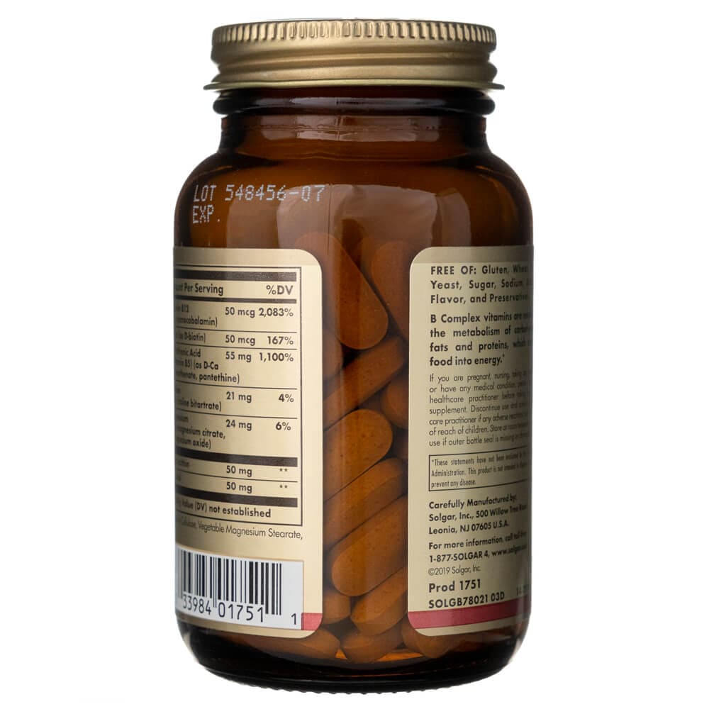 Cada nutriente necesario del Complejo Vitamínico B desempeña un papel único en el mantenimiento del correcto funcionamiento metabólico, al tiempo que apoya nutricionalmente al organismo durante el estrés ocasional de la vida diaria. Las vitaminas del complejo B contribuyen al metabolismo de los nutrientes. Esta fórmula proporciona además algunas vitaminas B coenzimáticas en un estado preparado para el organismo. Las vitaminas del complejo B ayudan en el metabolismo de los hidratos de carbono, grasas y proteínas para apoyar la producción de energía celular para el cuerpo.