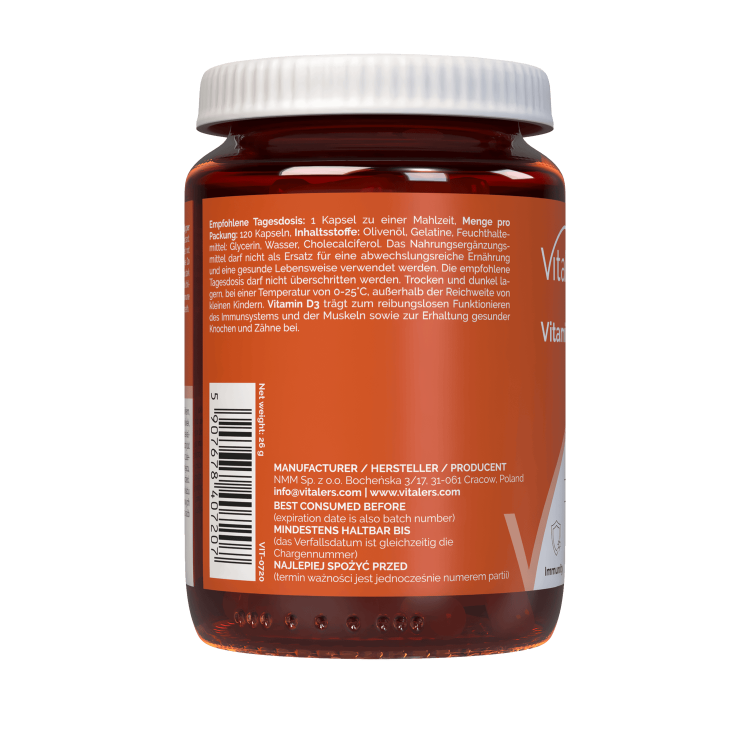 Vitaler's Vitamina D3 4000 UI - 120 Cápsulas blandas