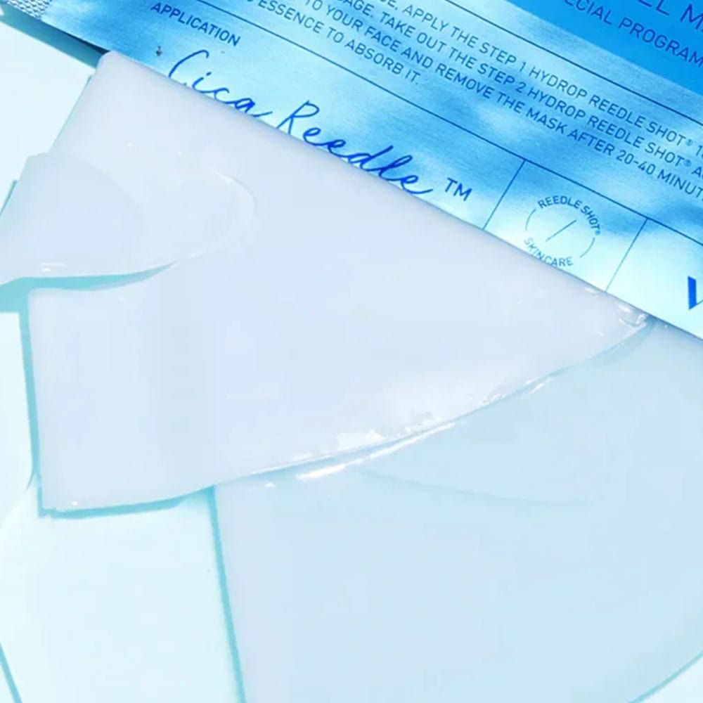 Mascarilla en dos fases VT Cosmetics Hydrop Reedle Shot 100hL Mascarilla en dos fases con tecnología Cica Reedle™ que proporciona una hidratación profunda y regeneración. El set incluye un sérum hidratante y una mascarilla de hidrogel con ácido hialurónico i Centella asiática .